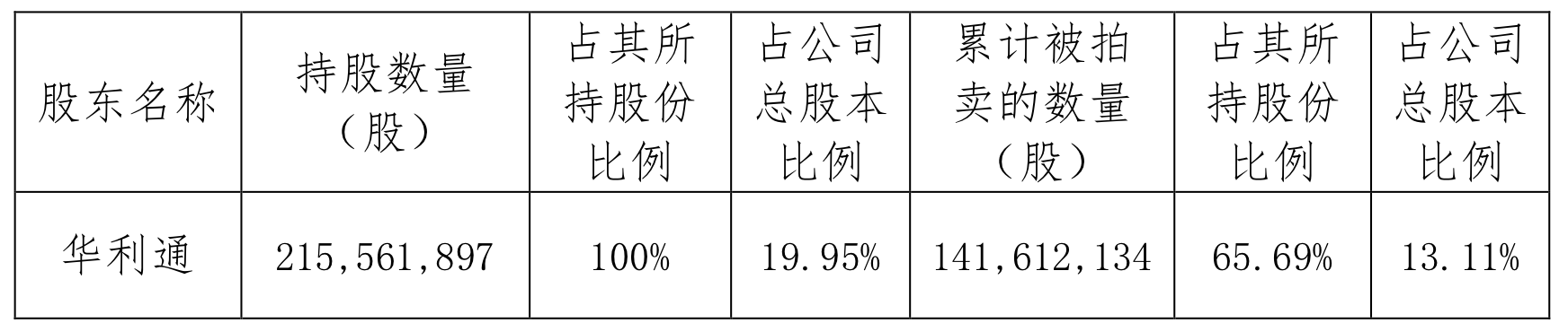 另外除了第一大股东之外,第三大股东深圳日昇创沅资产管理有限公司的7637.9302万股(占总股本7.07%),原本也计划在8月25日-26日进行拍卖,不过该拍卖中止,深圳日昇创沅资产管理有限公司移送破产审查。