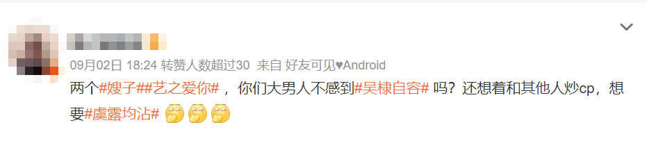 两对CP都疑似男方有了女友,于是,“嫂子”的话题词在9月1日下午冲上了微博热搜第一。不明真相的群众看到这个微博热搜,可能会完全摸不着头脑。