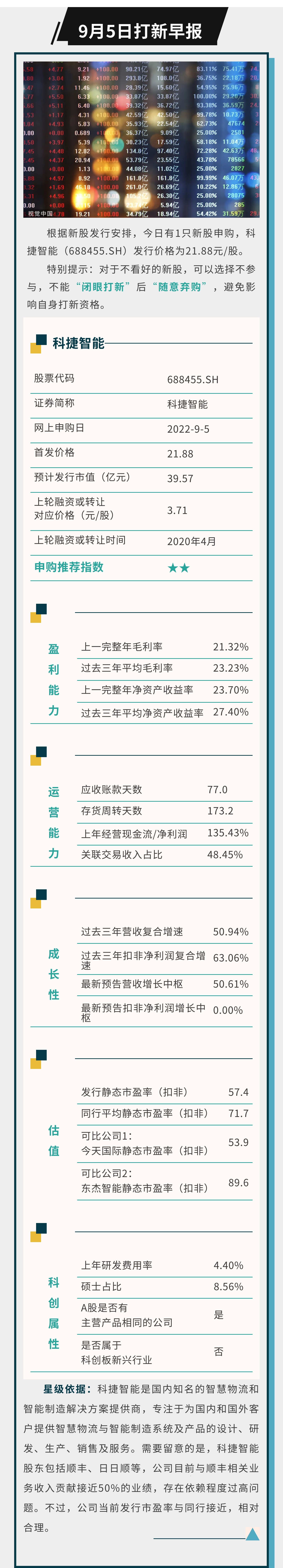 打新早报 | 科捷智能今日申购,过半业务来自股东顺丰