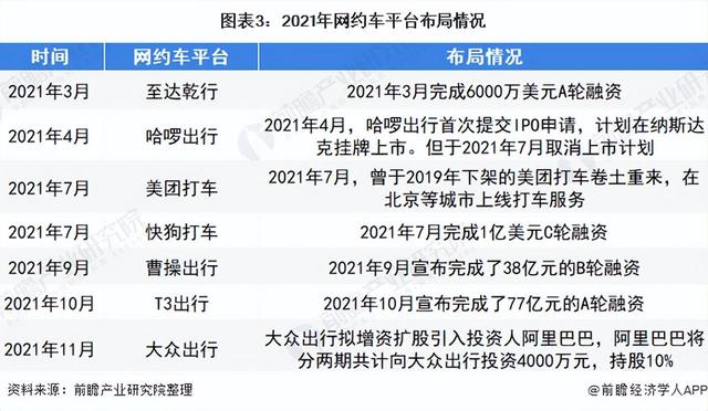 根据相关数据显示,2021年,中国网约车市场共完成16起融资,其中曹操出行和T3出行分别先后拿到了38亿元B轮融资以及77亿元A轮融资。