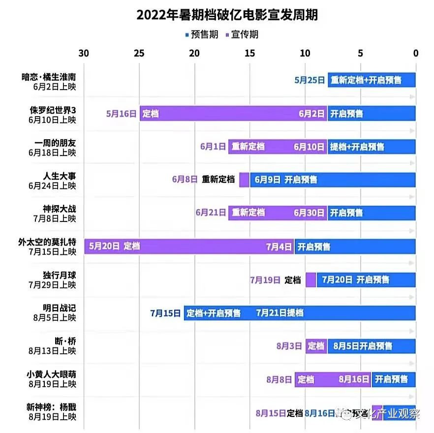数据显示,《小黄人大眼萌》8月8日定档,8月16日预售;《神探大战》6月21日定档,6月30日预售,更有甚者,定档预售只隔一天或者直接放在同一天。《暗恋·橘生淮南》5月25日定档加预售;《明日战记》7月15日定档加预售;《人生大事》6月8日定档,6月9日预售;《独行月球》7月19日定档,7月20日预售;《断·桥》8月3日定档,8月5日预售;《新神榜·杨戬》8月15定档,8月16预售。