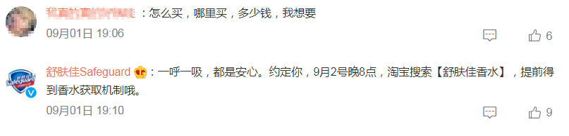 舒肤佳真的出香水了。青眼了解到,今日晚8点,舒肤佳官方正式官宣首批1万份香水将在9月6日上线,但并不单独售卖。