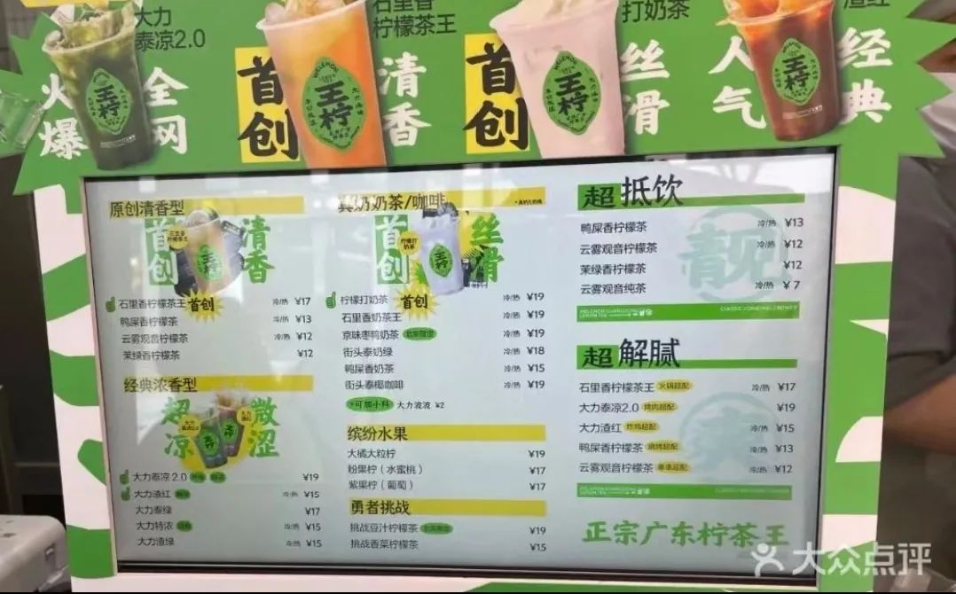 王柠上海K11购物中心门店菜单,图源:大众点评用户@1wen19