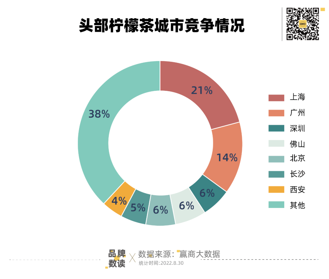 不仅门店布局上,街边店、购物中心店双管齐下,在地域上,不甘于局限在广东的柠檬茶也在北方攻城略地。从购物中心门店分布来看,上海柠檬茶品牌的密度已经反超广东本地的城市,而因为柠季密集的布局,长沙也成为不容小觑的柠檬茶之城。