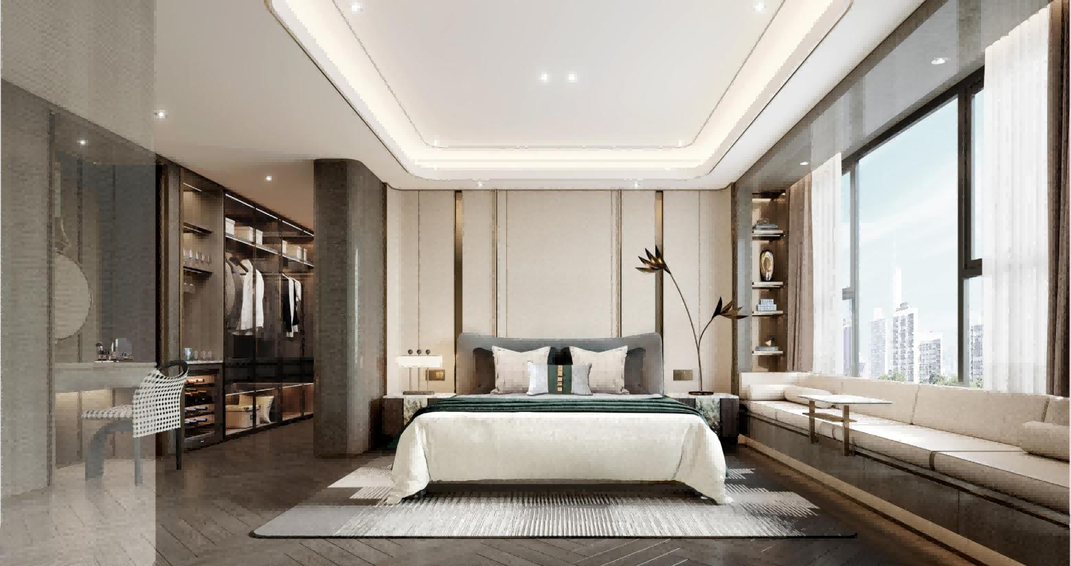 超大主卧套房,方能契合业主的圈层身份,约40㎡总统级套房主卧,定制专属的沉浸式休憩之所,配备独立衣帽间、私享卫浴,匠心精研的舒雅空间尺度,与生俱来的大家风范与仪式感自然流露。南向双套房卧室格局,为每位居者营造独立的生活空间,兼顾生活隐私,又能在各区域间保持良好的交融性与连通性,演绎大人物的舒居理想家。