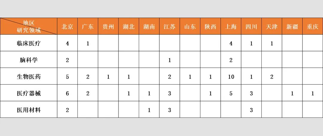 北京研究方向分布均衡,上海重仓生物医药,江苏、四川医用材料研究具备优势