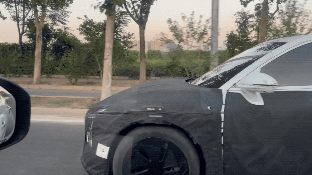 而从此次网友实拍视频来看,测试车前机盖虽被黑色蒙布覆盖,但表面整体比较平整,没有任何凸起。