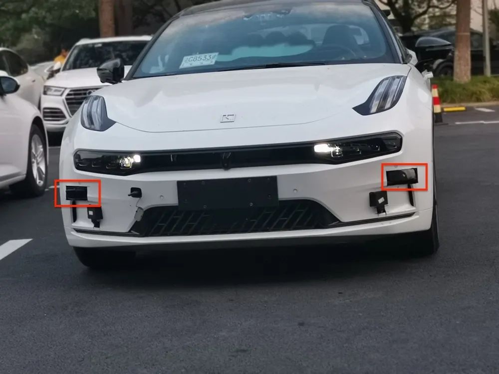 并且,从视频中可以看到,在车辆前杠两侧、大灯下方有一个表面呈黑色反光的矩形组件。并且,有网友也从集度上海研发中心拍到一张搭载激光雷达的极氪001,其布局位置与此次拍到的测试车比较接近。