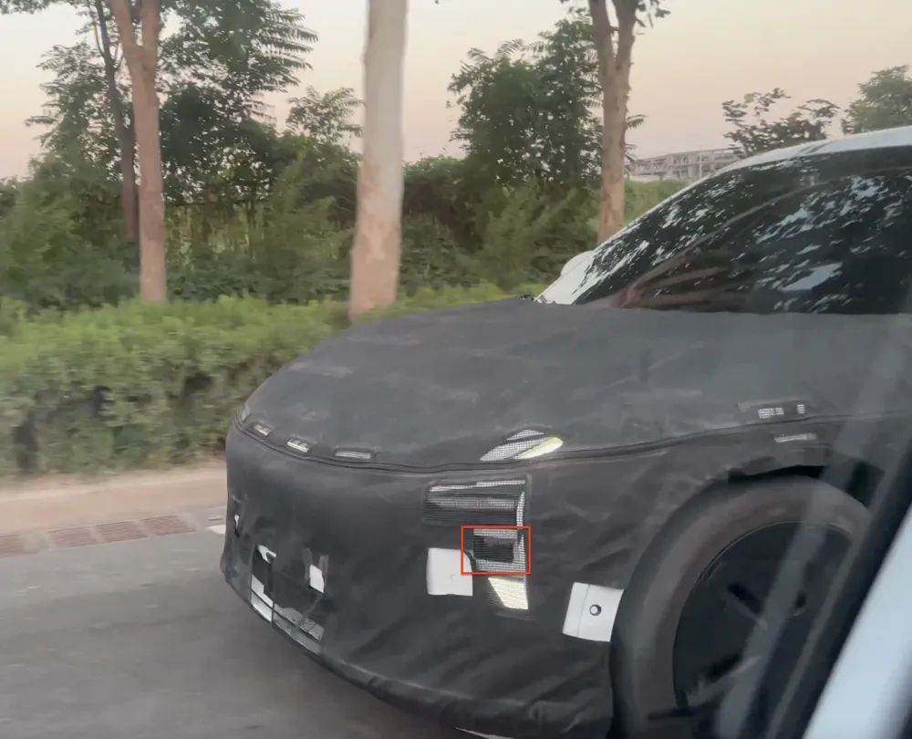 除了装在保险杠两侧的激光雷达外,从视频中还可以看出车辆的前中网下方还有一个黑色矩形组件,但因角度受限并不能准确判断是否为激光雷达还是其他传感器。