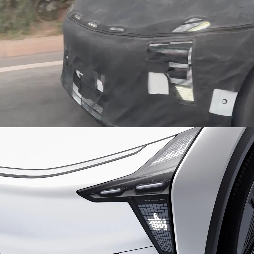 车头除了激光雷达之外,前灯组造型与此前发布的概念车比较接近,呈“三角星”样式,内部集成了交互式AI像素大灯,可以根据自身对于外部环境的感知,显示像让行、自动驾驶状态、通行指示等灯语,帮助车辆与其他交通参与者进行交互。