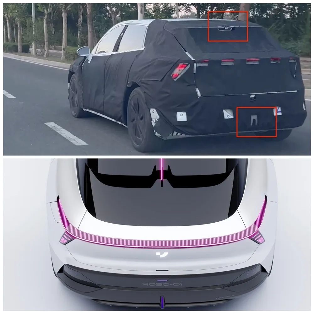 今天上午,有网友在北京顺义某街道上拍到了一台披着伪装的测试车,从轮廓、大灯等细节可以判断出这是集度汽车的首款车型ROBO-01的量产版本。