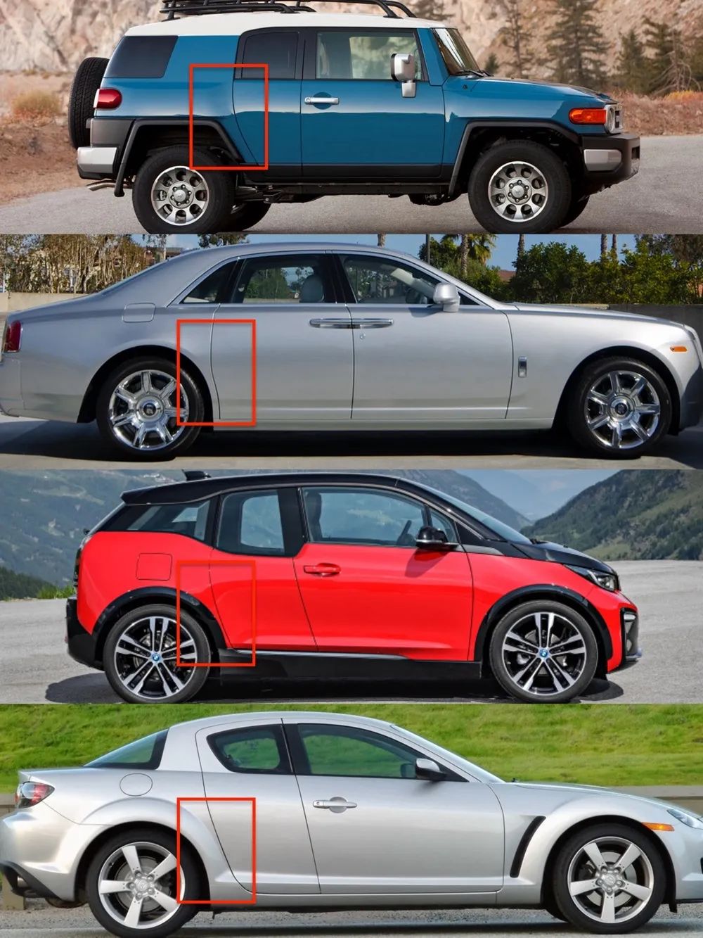 但车东西发现,该测试车的后门下沿是轮眉的一部分,两者融为一体,而大部分对开门车型的后轮眉与车门都是相互独立(包括ROBO-01概念版)。
