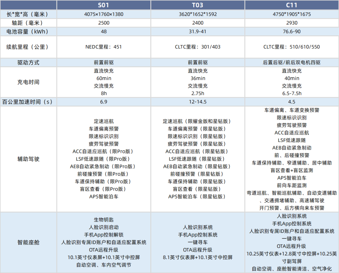 5、量产车型中,S01惨淡、T03妥协,C11终于找到了节奏