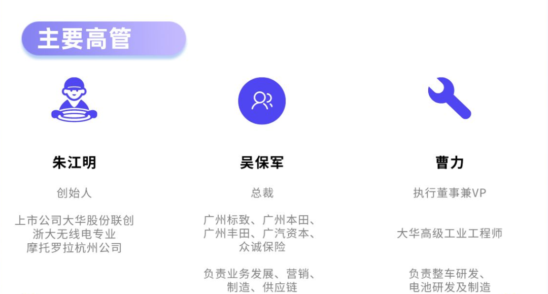 三位核心管理层,两位来自大华,缺少汽车产业从业经历,是比较偏科的存在。