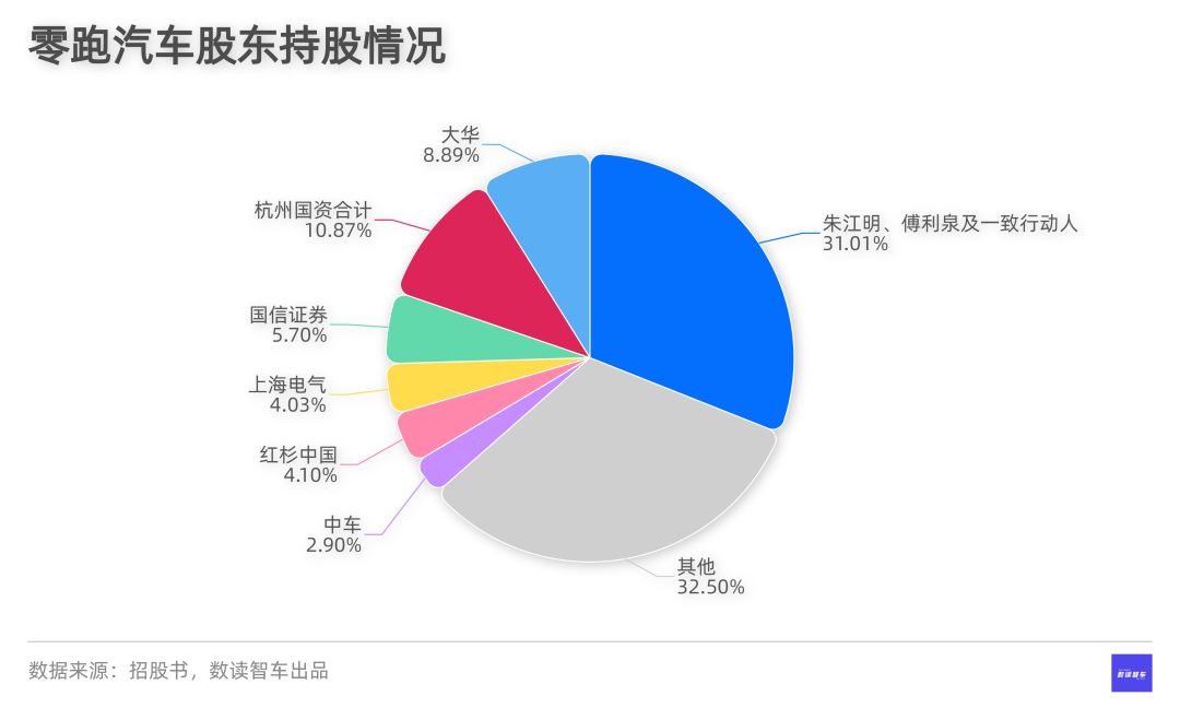 在此之外,朱江明创业成功,也保证了零跑初期有充足的的启动资金,零跑创立之初,大华占股33%,创业老伙伴傅利泉持股32%。