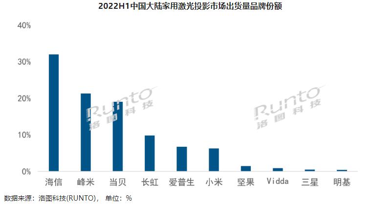 据悉,截止到今年上半年,爱普生、当贝、峰米、视美乐等行业先锋品牌已经推出多款激光微投产品,同时激光电视第一品牌海信也在今年5月份正式推出旗下首款4K激光智能投影Vidda C1,激光微投市场的品牌厚度得到进一步“加固”。