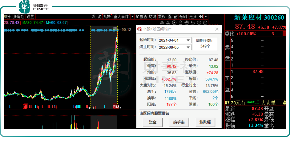 拉长时间看,新莱应材股价于2016年至2021年3月期间均处于14-16元/股震荡,表现不温不火。自2021年4月以来,该股进入上行趋势,迄今累计涨幅已达5.6倍,妥妥的大妖股。