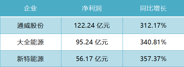 近日,硅料头部企业通威股份、大全能源、新特能源分别发布2022上半年业绩报告,营收以及净利润均大幅增长,三家企业净利润之和达273.65亿元,同比涨幅均达3倍以上。