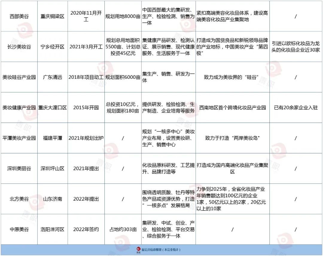 在当地政府的大力支持与推广、促进下,各地对于美妆产业园的布局正在不断提速,全国化妆品产业进入产业集群式高速发展。
