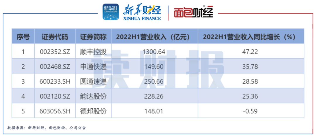 申通快递上半年实现营收149.6亿元,同比增长35.78%,增速排在第二位。圆通速递、韵达股份上半年营收增速也均超过20%。
