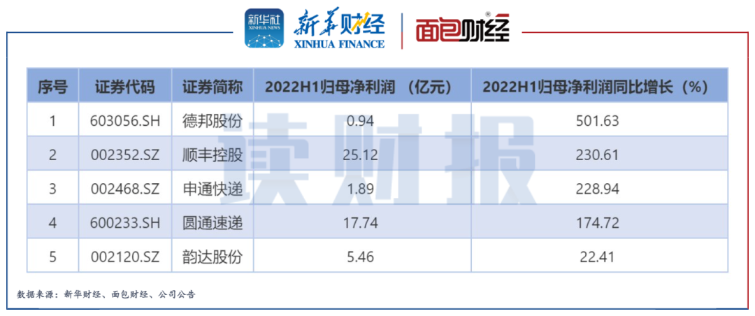 德邦股份上半年实现归母净利润0.94亿元,同比增长501.63%。归母净利润在5家快递公司中最少,但同比增速排在首位。当期,德邦股份非经常性损益项目金额为1.65亿元,其中计入当期损益的政府补助为2.05亿元。扣除非经常性损益后,德邦股份上半年归母净利润亏损0.71亿元。