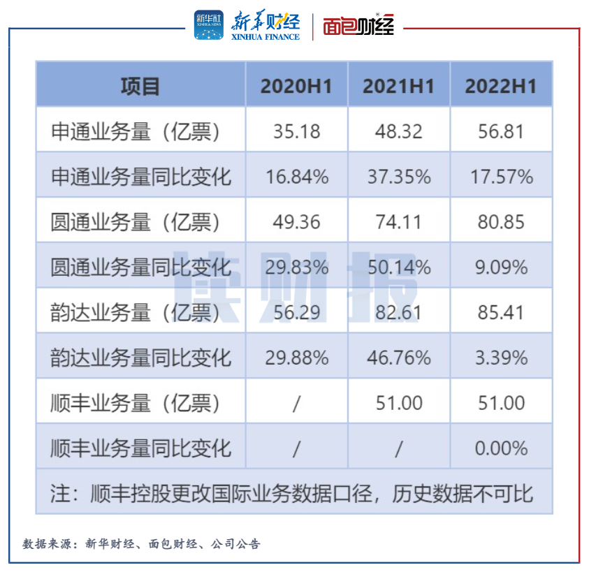 此外,顺丰控股上半年实现业务量51亿票,同比持平,增速在4家快递公司中垫底。