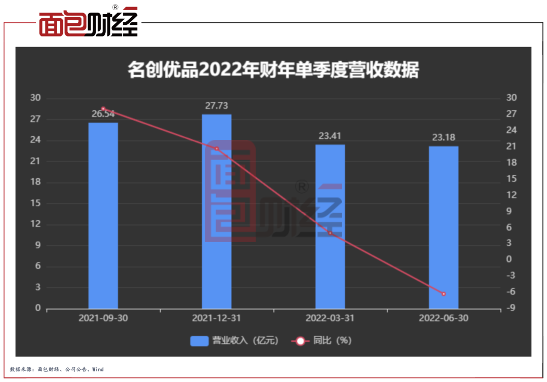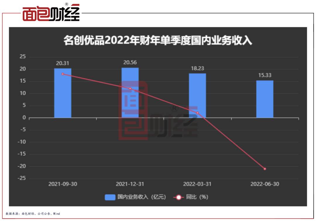 2022财年,公司国内收入为74.4亿元,同比仅增长2.1%;其中,公司主要品牌名创优品国内产生收入为68.3亿元,较去年同期微降2%。