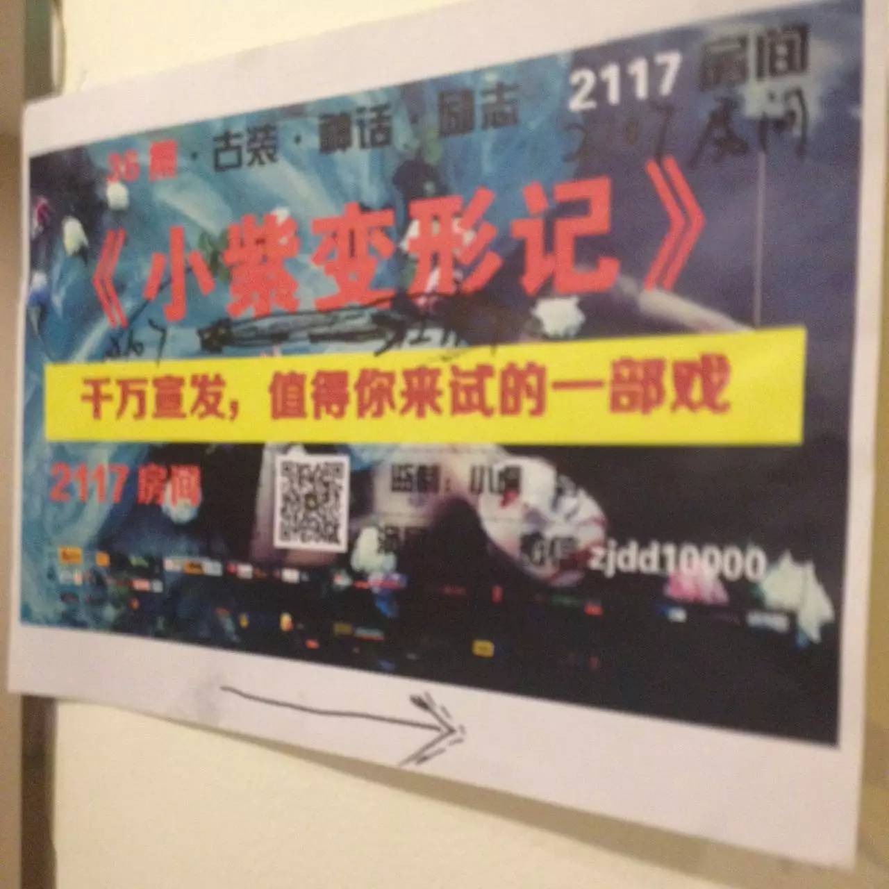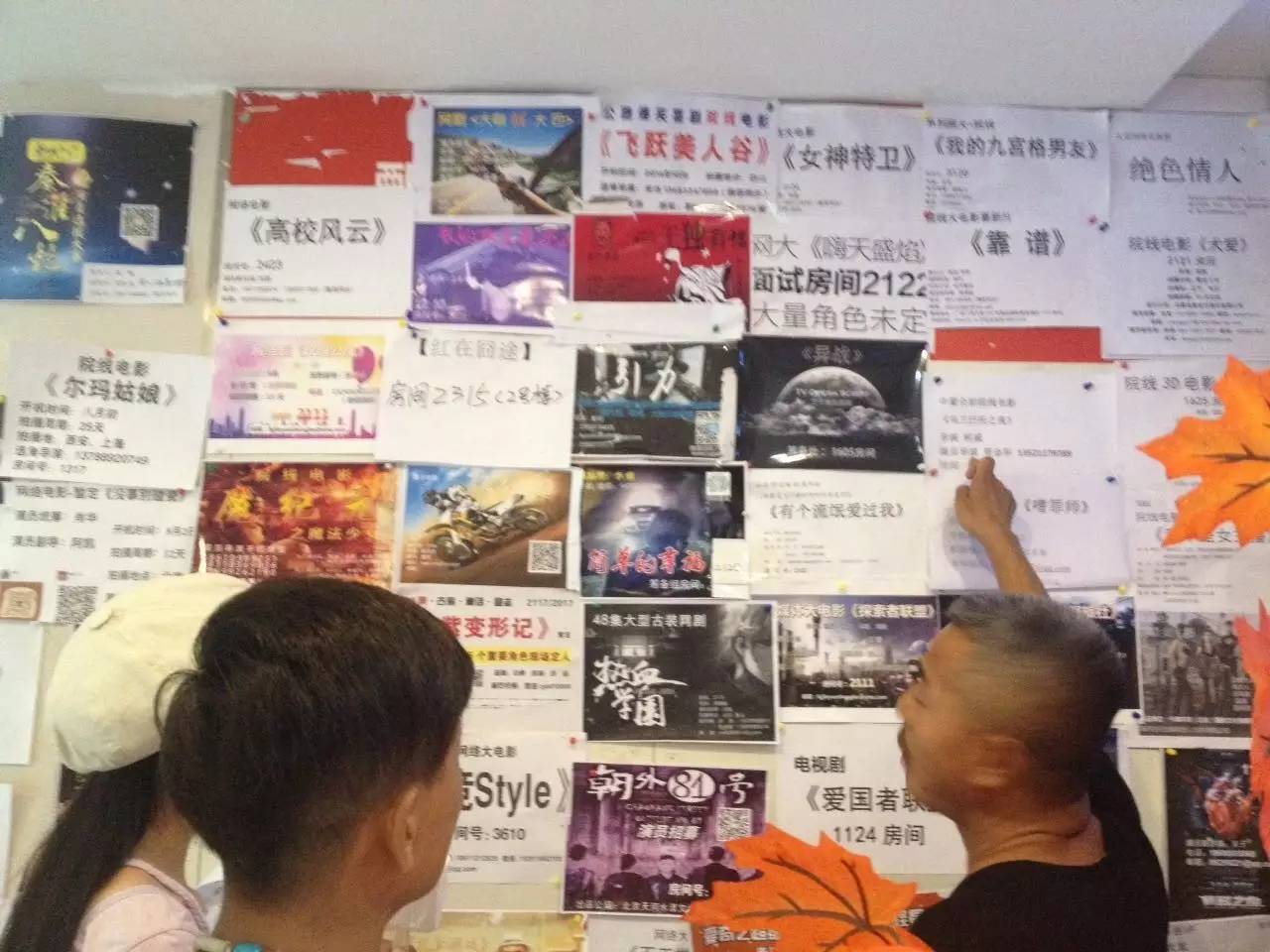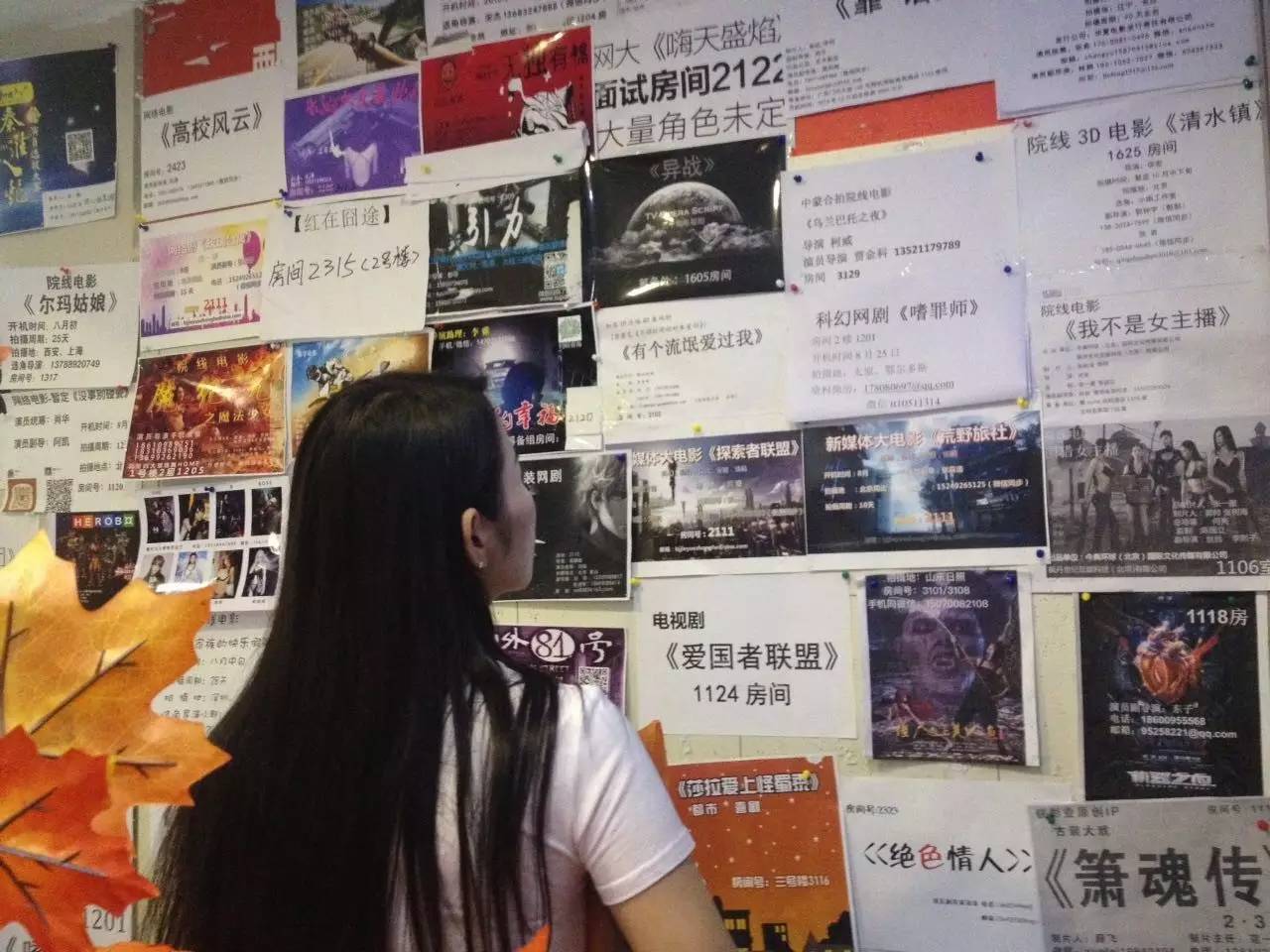 不过,贴在飘Home酒店一楼进门处的招演员启示很多,但看完一圈却很难有什么惊喜。一张A4纸张大小的招聘单上,信息都非常简单,甚至有的就只是一张白纸上,一个片名一个房间号,连一张图都不会多。从片名看,无非就是惊悚、鬼怪、软色情,还有一些校园爱情。