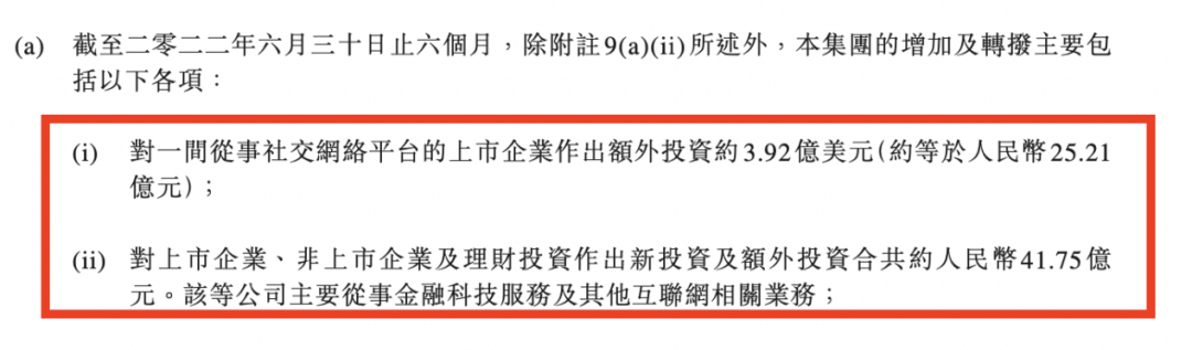 根据其最新的财报数据显示,仅在2022H1期间,腾讯就再度往外“撒钱”超过350亿元,其中对于联营及合营企业额外投资69.88亿元,对于上市、非上市企业及理财投资280亿元,对于一家从事社交网络平台的上市企业额外投资3.92亿美元(约合25.21亿元)。腾讯,还是那个不差钱的腾讯。这点不用怀疑。