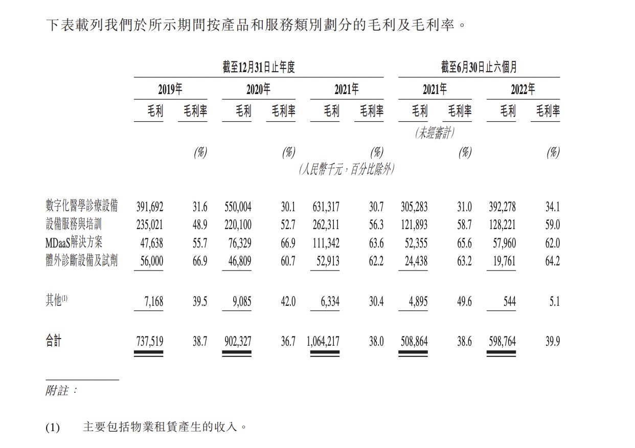 此外,东软医疗大部分产品与服务经手第三方经销商,再由经销商将产品与服务销售给终端客户(如,医院及其他医疗机构)。招股书显示,2019年-2021年,东软医疗的分销商收入金额为11.37亿元、16.29亿元与19.55亿元,分别占总营收比例为60.2%、66.8%、70.3。此外,2019年-2021年,东软医疗的毛利率分别为38.7%、36.7%、38%。