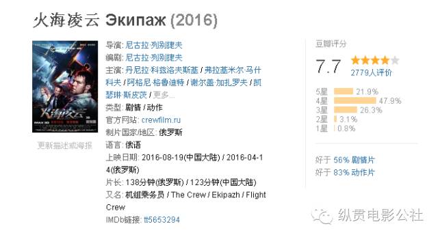 不得不说,在国产烂片横行到“谁比谁更烂”的态势下,观众似乎已经看到麻木的神经痛,而这部翻拍自1980年同名影片《机组乘务员》的俄罗斯第一部灾难片还未上映,就已经备受关注,并在豆瓣上取得了7.7分的高评分使得该片更加备受期待。而据悉,该片成为俄罗斯今年最卖座的电影,创下了约合人民币两亿的高票房。