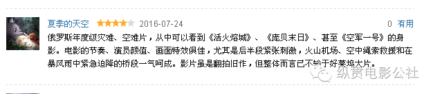 俄罗斯年度级灾难、空难片,从中可以看到《活火熔城》、《庞贝末日》、甚至《空军一号》的身影。电影的节奏、演员颜值、画面特效俱佳,尤其是后半段紧张刺激,火山机场、空军绳索救援和在暴风雨中紧急迫降的桥段一气呵成。影片虽是翻拍久作,但整体而言已不输于好莱坞大片。