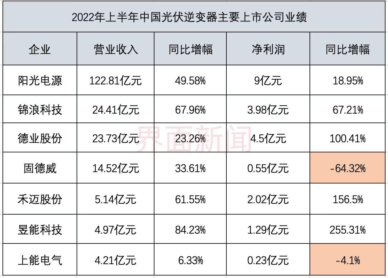 固德威和上能电气则在上半年遭遇了净利下滑。