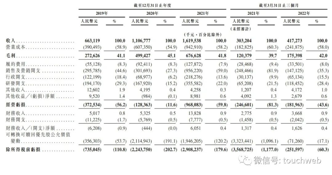 2019年至2021年度,Keep毛利分别为2.73亿元、4.99亿元、6.77亿元;毛利率分别为41.1%、45.1%、41.8%。Keep在2022年第一季度毛利为1.75亿元,较上年同期的1.2亿元增长45.7%,毛利率为42%。