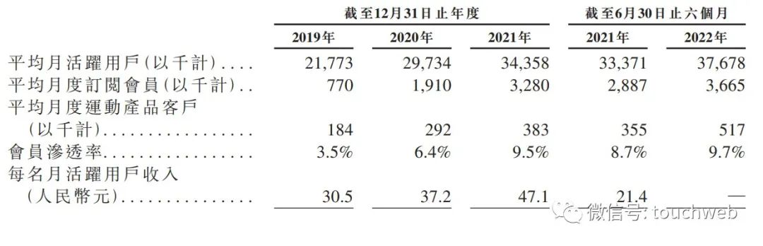Keep平台会员渗透率由2020年的6.4%增长至2021年的9.5%,并由截止到2021年6月30日止6个月的8.7%增长至截至2022年6月30日止6个月的9.7%。