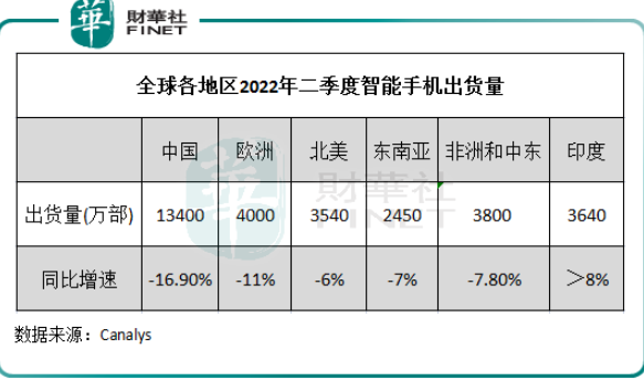根据Canalys统计,在今年二季度,中东和非洲(MEA)地区的智能手机出货量同比下降7.8%至3800万部,下降幅度低于中国和欧洲,高于北美和东南亚及印度。