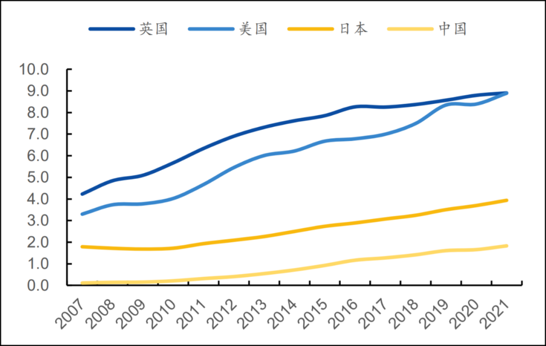 根据Euromonitor(欧睿)的数据,2021年美国、日本和中国人均能量饮料消费量分别为8.9L、3.9L和1.8L。经过计算,我们发现在广东,人均消费量已经达到美国水平,已经非常的成熟。