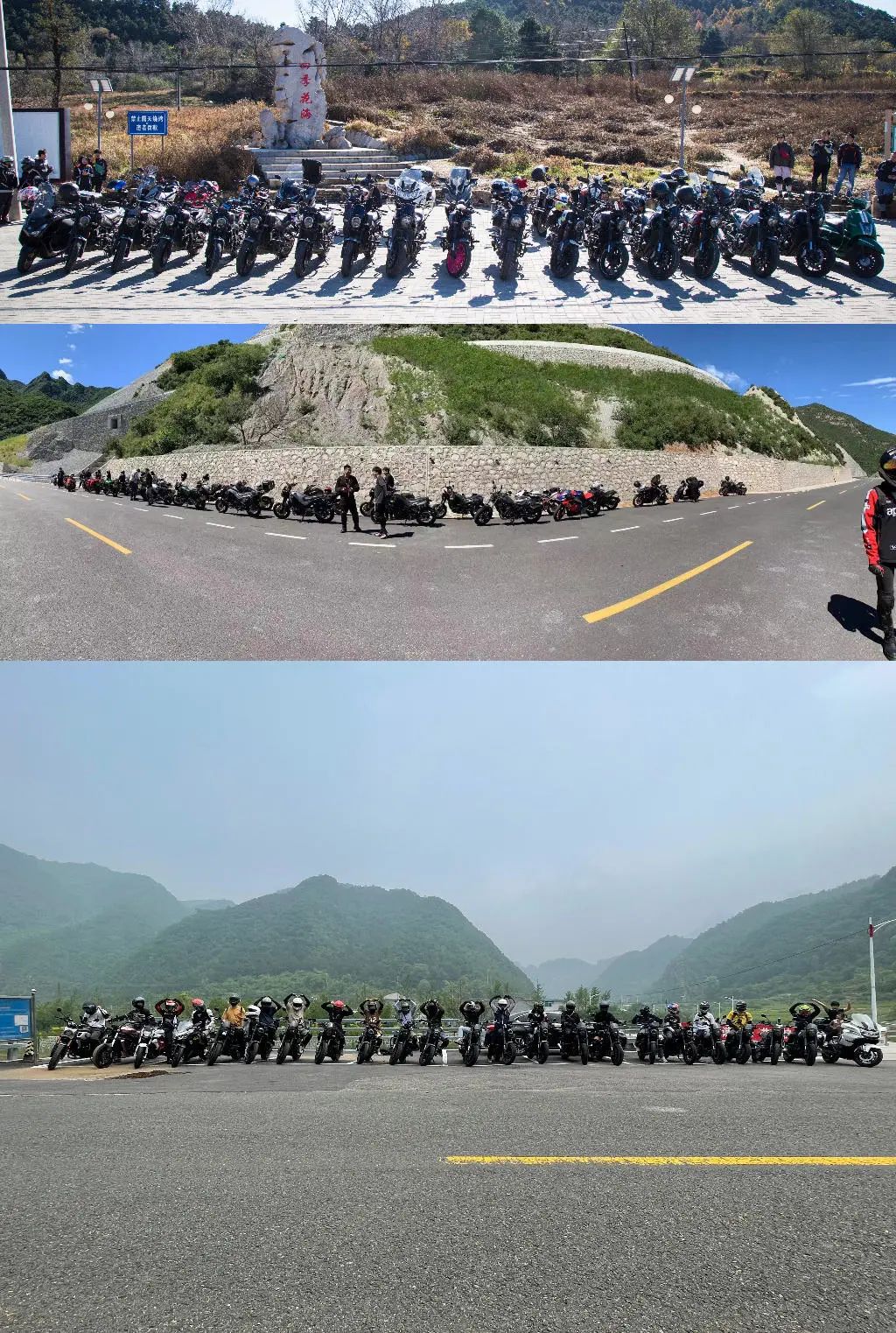 跑山,以及在四环以外畅行,是不少车友在通勤之外的玩车方式。车友们会定期总结适合骑行的路线,还会按照月份、季节梳理。新的禁摩路段、停车点也有人会随时更新。