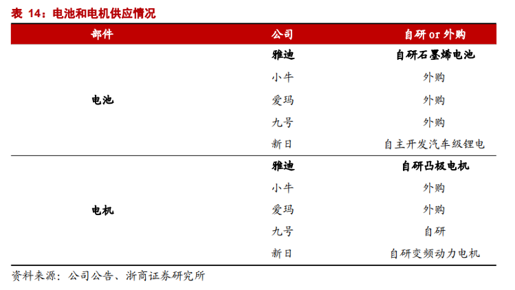 背后的考量也很现实。一方面,电池是电动两轮车“跑不快”、“跑不远”的痛点所在;另一方面,电动两轮车90%以上的营业成本来自电池、电机、控制器、车架、轮胎、充电器等原材料部件,其中又以电池为最大支出项。