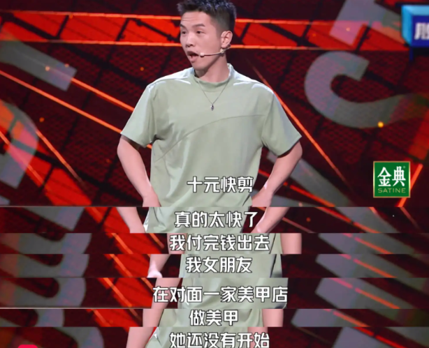 在《脱口秀大会》上,脱口秀演员豆豆讲述了他在10元快剪理发的经历,“吸尘器吸碎发”“没有尊严”、“感觉我脏了”、“只有寸头和平头”、“太快了,我都理完发了,女朋友的美甲还没开始”……