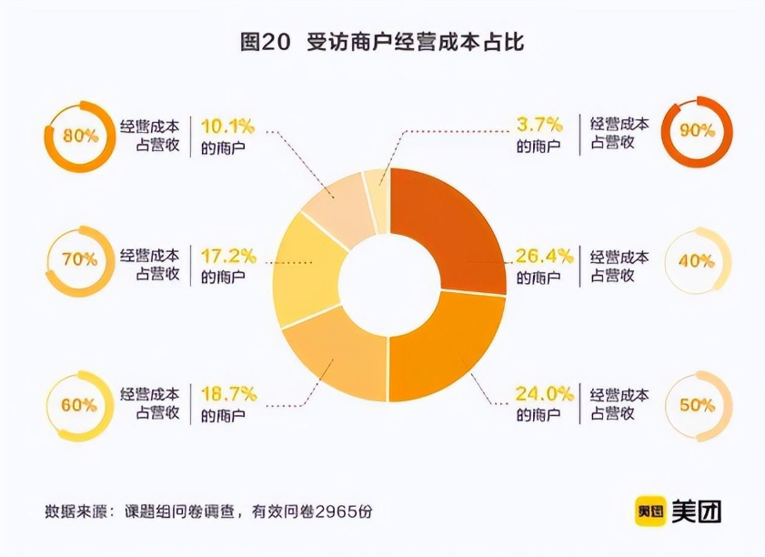 有一半以上商户的经营成本占门店营业收入的40%~50%,还有三成商户占比达到70%。