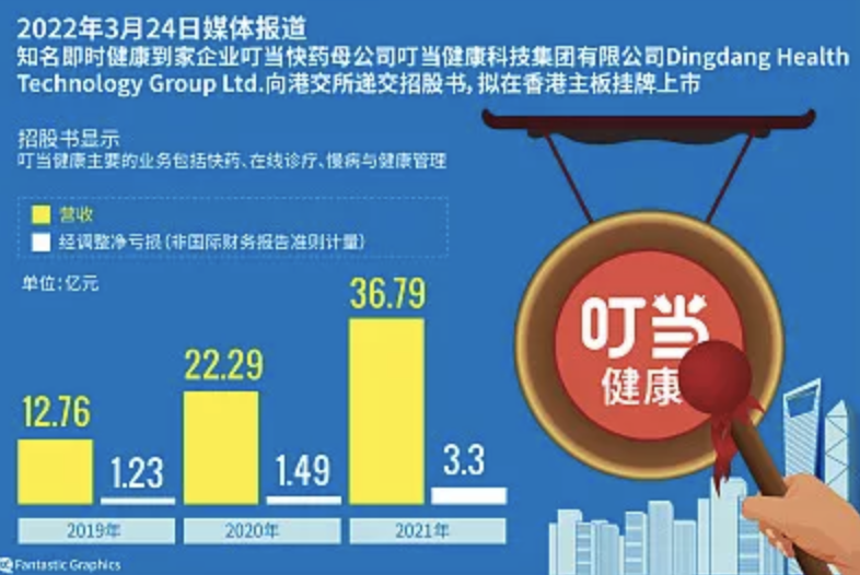 2021年6月,叮当健康首次向港交所递交上市申请,由于迟迟未通过上市聆讯,这份上市申请最终于同年12月失效。2022年3月,叮当健康再度递交资料,二度冲击资本市场,当时,距离叮当健康最后一轮融资已经过去9个月,按照此前的融资节奏,叮当快药每年正常补血次数为1~2次。