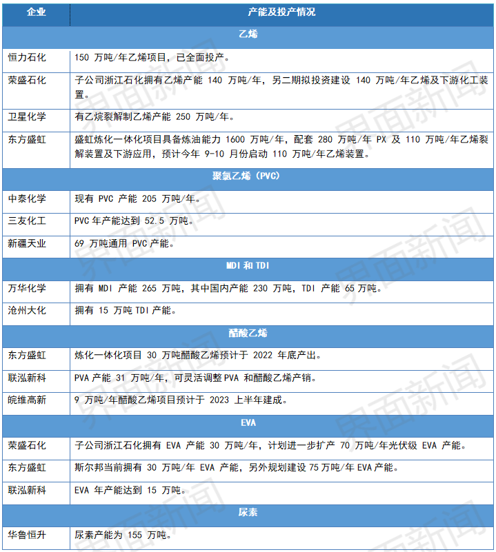 例如,乙烯企业中,国内恒力石化(600346.SH)、荣盛石化(002493.SZ)、卫星化学(002648.SZ)、东方盛虹(000301.SZ)或受益;聚氯乙烯(PVC)方面,中泰化学(002092.SZ)、三友化工(600409.SH)、新疆天业(600075.SH)等企业或迎来底部向上机遇。