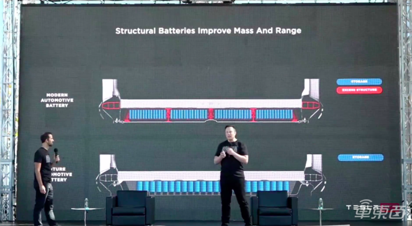 这个技术首先是要用先进的一体冲压技术来做出车身,然后再将电芯装入车辆中部。特斯拉表示,这种装配工艺在保持容量不变的情况下,能够省掉370个车身零部件,减轻10%的车身重量,同时还电池更接近车身中心,能够更好平衡车身,提升稳定性。