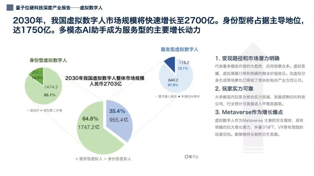 量子位在《数字虚拟人深度产业报告》中预测,到2030年,我国数字虚拟人整体市场规模将达到2700亿元。