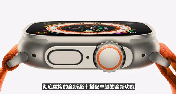 还多了个新产品线:Apple Watch Ultra,苹果迄今为止最高端的手表,确实为户外极限运动设计,工艺更NB、续航更强、而且三防了。