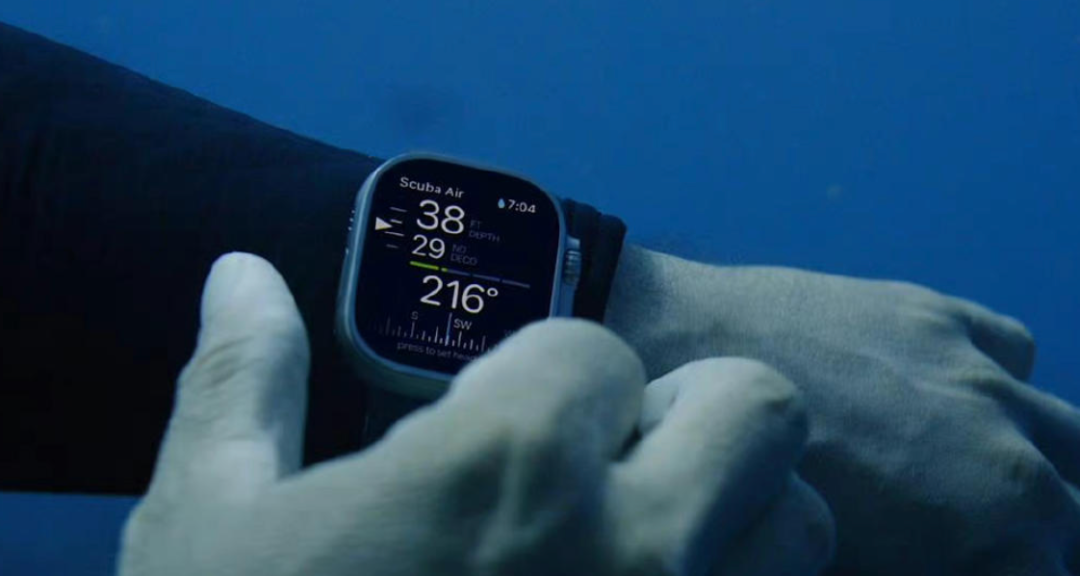 苹果玩潜水了!支持零下 20 ℃ 到 55 ℃ 使用环境,具有WR100的防水性能,强化潜水功能,包括水肺潜水。