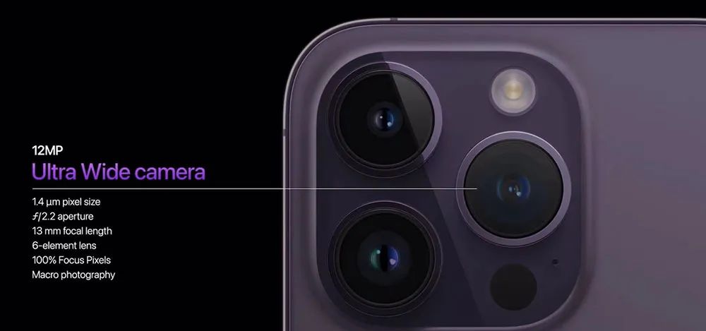 苹果称,Pro版的超广角镜头的暗光拍照表现也提升了3倍,同时支持微距拍照。