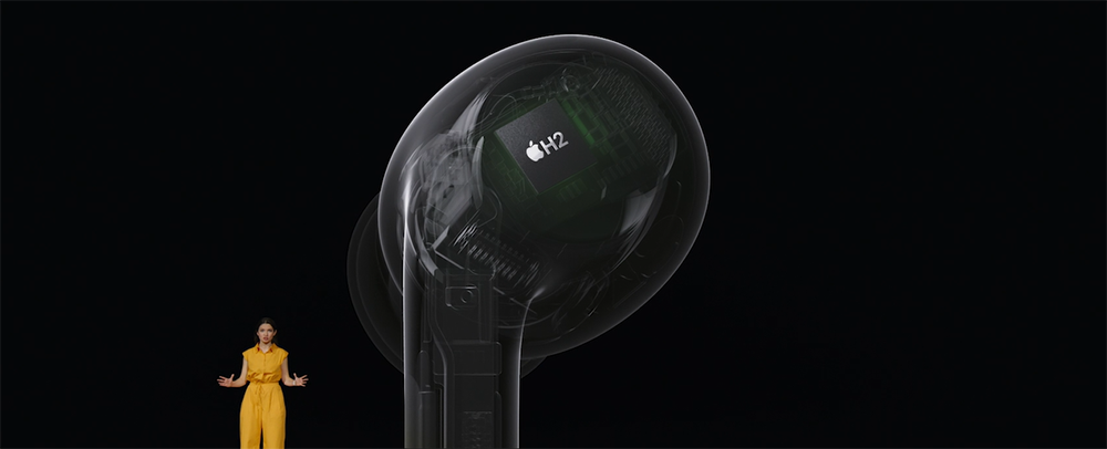 AirPods Pro 2采用了新的H2芯片,在苹果耳机一向表现中规中矩的音质方面,这次AirPods Pro 2这次采用了一个低失真度驱动单元和一个定制放大器驱动,声音频率范围达48kHz,声音细节表现更好。