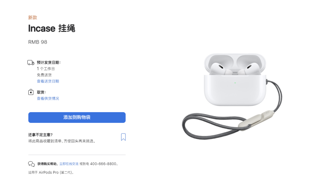 苹果还贴心地为你准备了一根耳机盒挂绳,售价98元,童叟无欺。